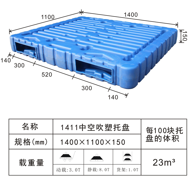 您现在的位置: 首页>产品展示>吹塑托盘系列 >1411 中空吹塑托盘